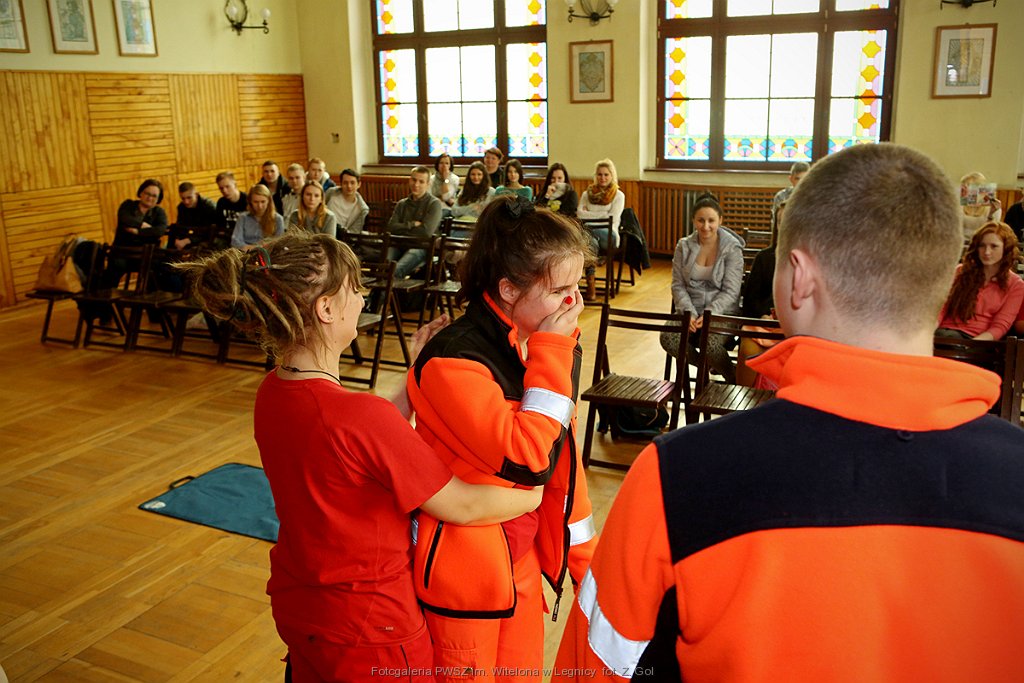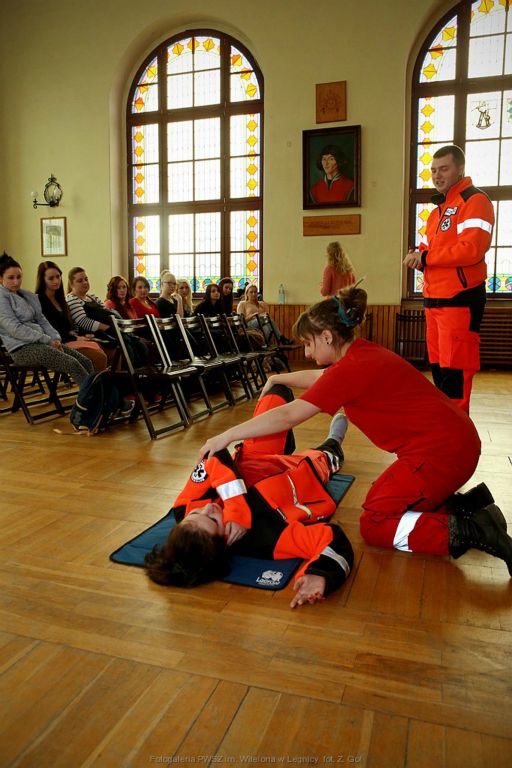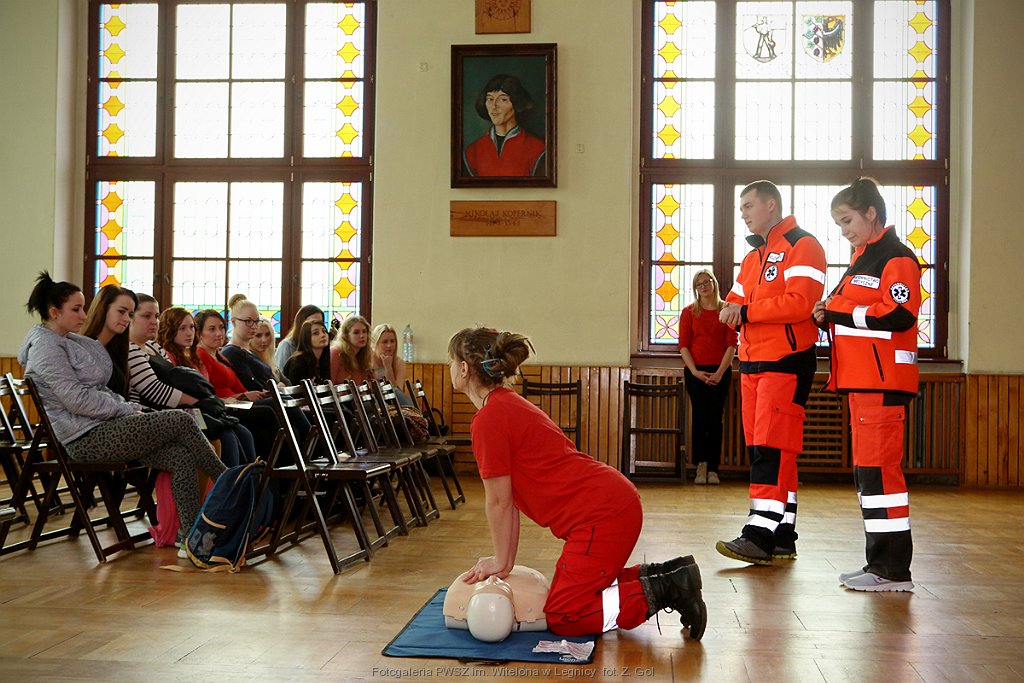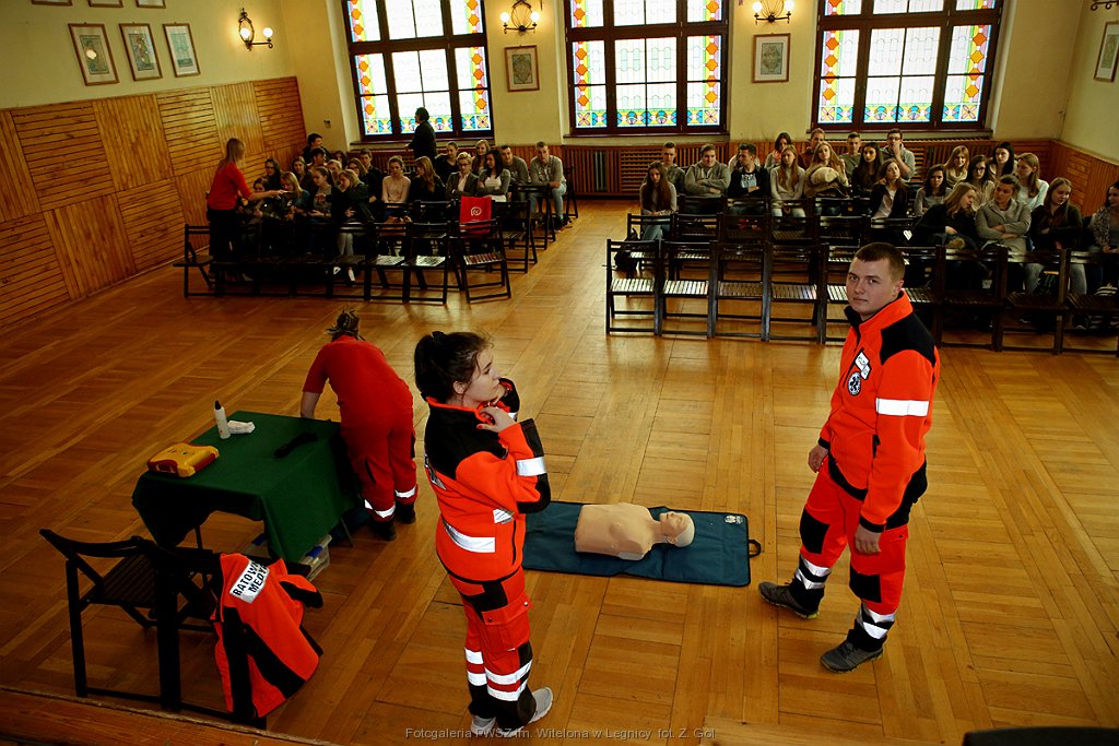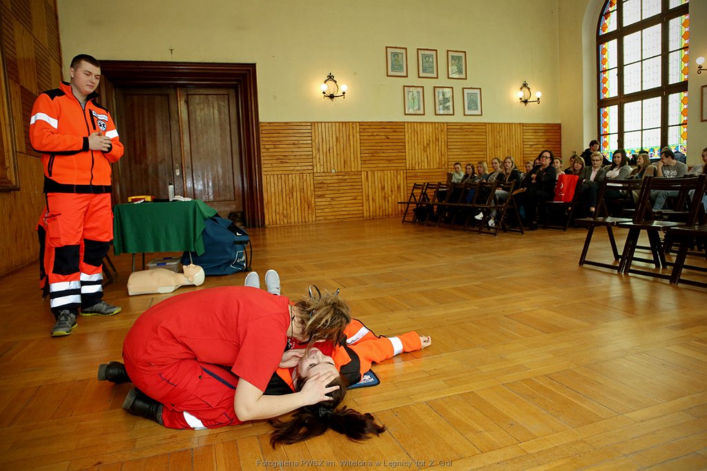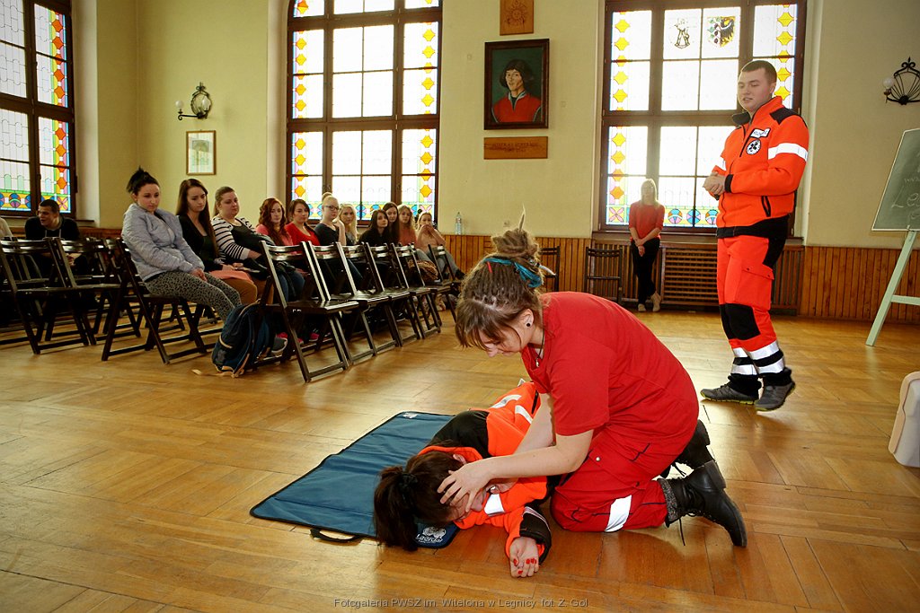 2016-03-07 Promocja oferty edukacyjnej uczelni w Powiatowym Zespole Szkół Ponadgimnazjalnych Nr 1 im. Mikołaja Kopernika w Środzie Śląskiej. W ramach prezentacji umiejętności praktycznych zdobytej wiedzy – sztukę udzielania pierwszej pomocy pokazali ratownicy z Koła Naukowego Młodych Medyków.
