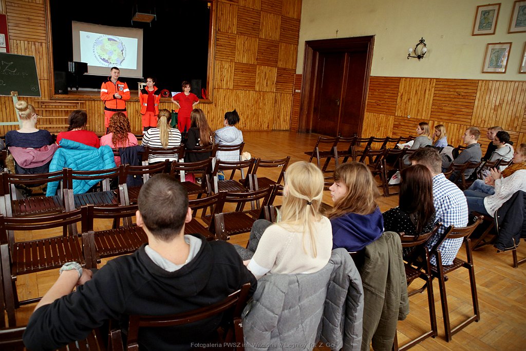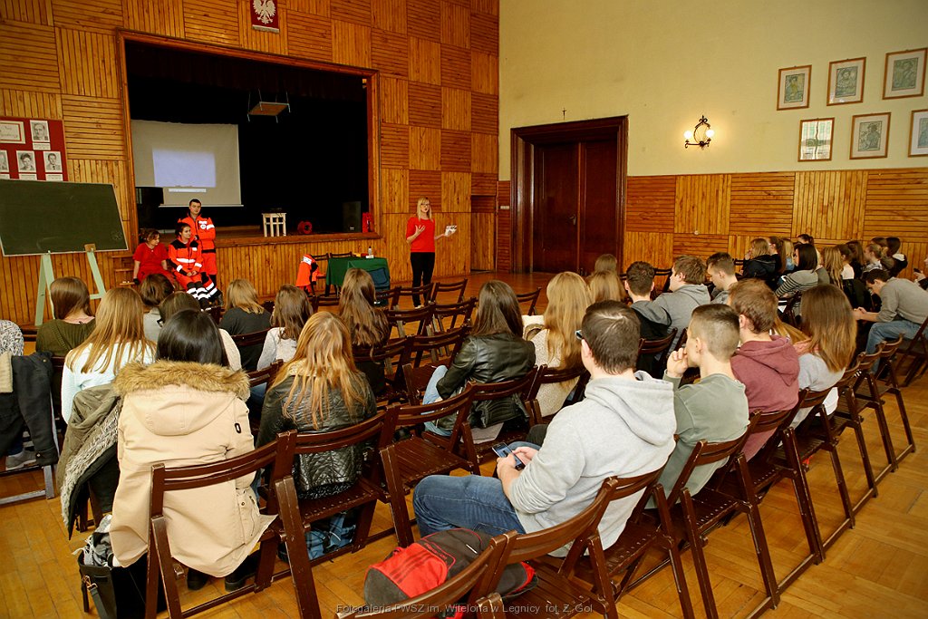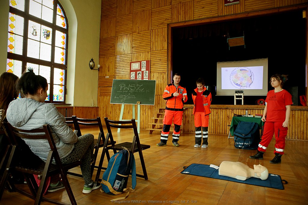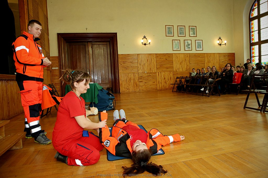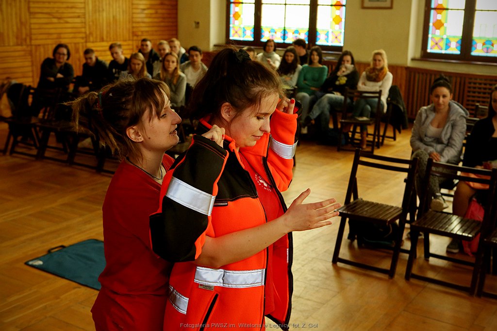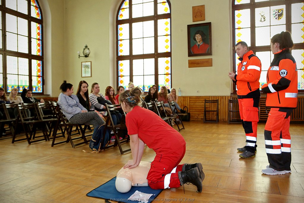 2016-03-07 Promocja oferty edukacyjnej uczelni w Powiatowym Zespole Szkół Ponadgimnazjalnych Nr 1 im. Mikołaja Kopernika w Środzie Śląskiej. W ramach prezentacji umiejętności praktycznych zdobytej wiedzy – sztukę udzielania pierwszej pomocy pokazali ratownicy z Koła Naukowego Młodych Medyków.